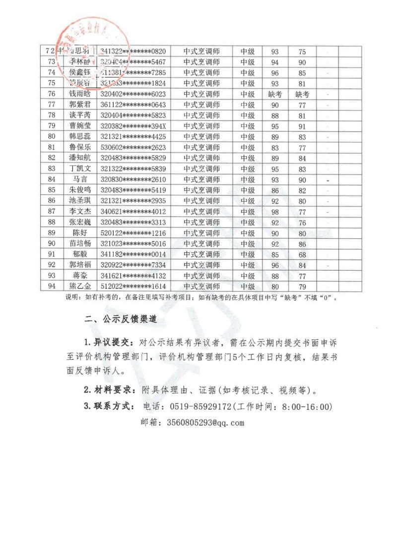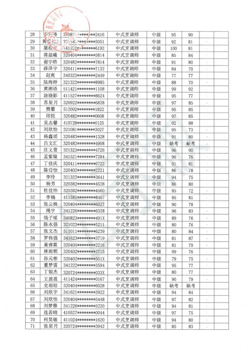 2025-32040020-00009中式烹调师(中级)成绩公示