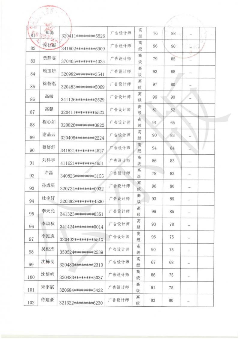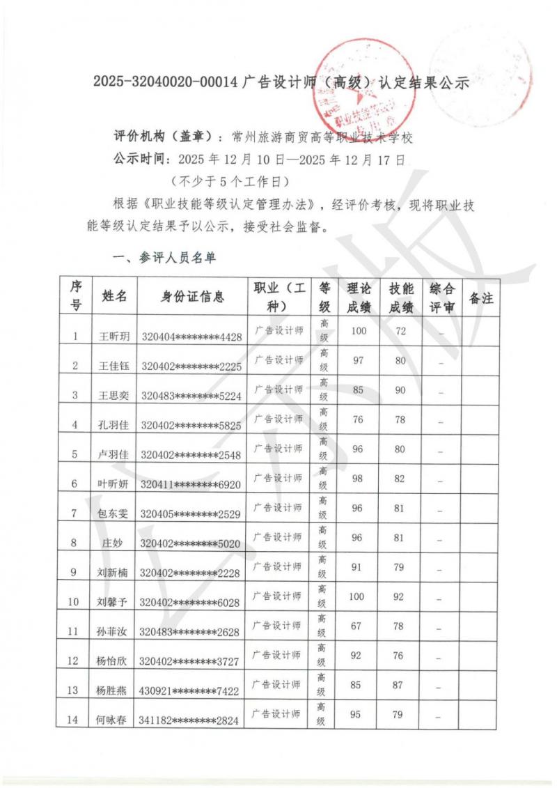 2025-32040020-00014广告设计师 (高级) 认定结果公示