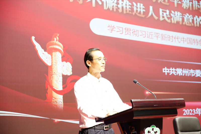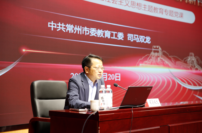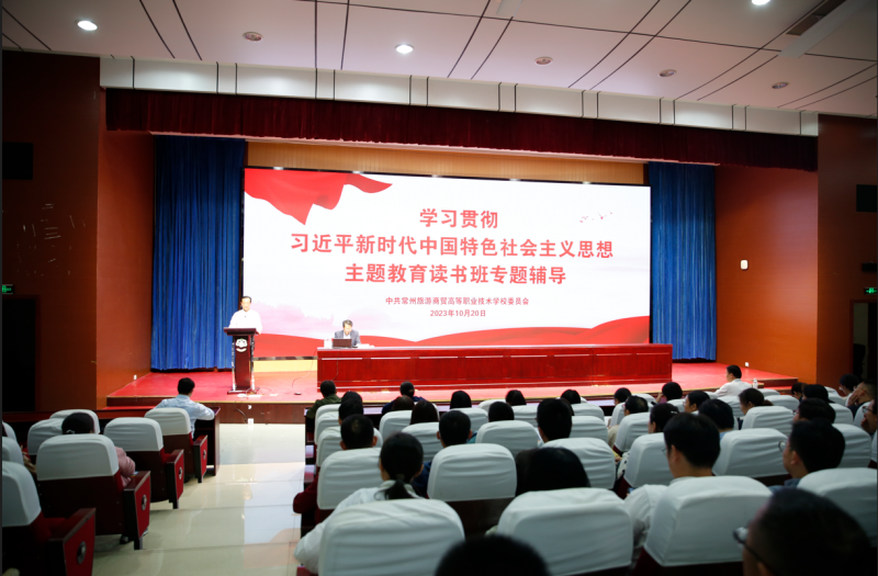 10月20日下午,中共常州旅游商贸高等职业技术学校委员会举行学习贯彻习近平新时代中国特色社会主义思想主题教育读书班专题辅导,市委教育工委书记司马双龙带来学习贯彻习近平新时代中国特色社会主义思想主题教育专题党课——《深刻理解把握习近平新时代中国特色社会主义思想,坚持不懈推进人民满意的教育昂首阔步迈向新台阶》,学校全体党员、民主党派和无党派人士参加了此次党课学习,校党委书记蔡廷伟主持。