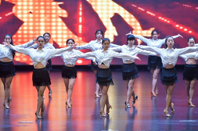 颁奖间歇体育舞蹈队为观众们带来了激情的恰恰与热情的桑巴,队员们穿着华丽的舞蹈服装,在灯光的映照下,舞姿舒展,充满魅力。她们以灵动的身姿、舞动的步伐,为观众们带来了一场精彩的视觉盛宴。