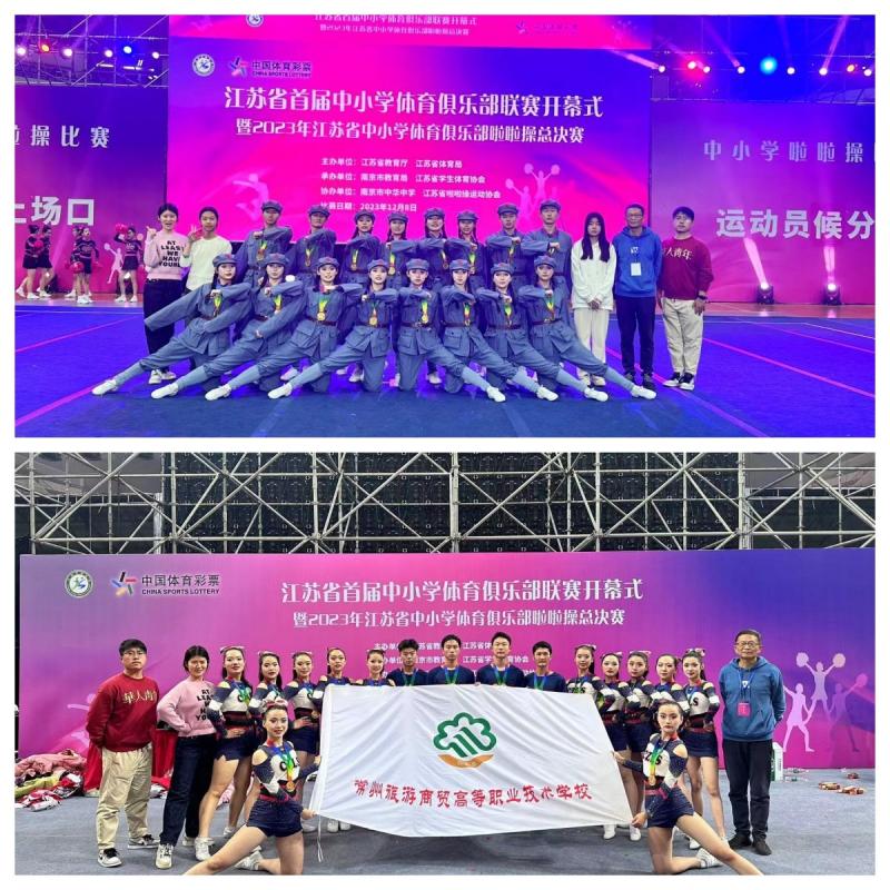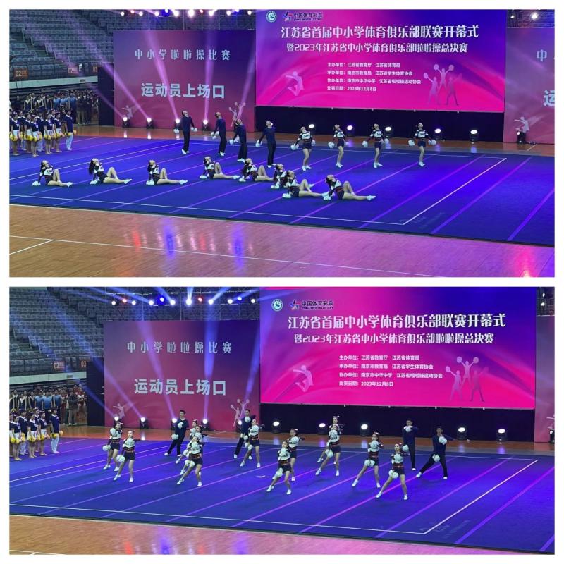 12月8日,2023年江苏省中小学体育俱乐部啦啦操总决赛在南京举行,本次比赛共有全省13个设区市的小学、初中、高中(含中职)36支俱乐部代表队参赛,我校啦啦操队代表常州市唯一一支队伍参加高中组(含中职)比赛,经过一天的激烈角逐,我校啦啦操队以规定组合第一名、集体创意第三名的优异成绩,从13个设区市的高中(含中职)队伍中脱颖而出荣获团体第一名。