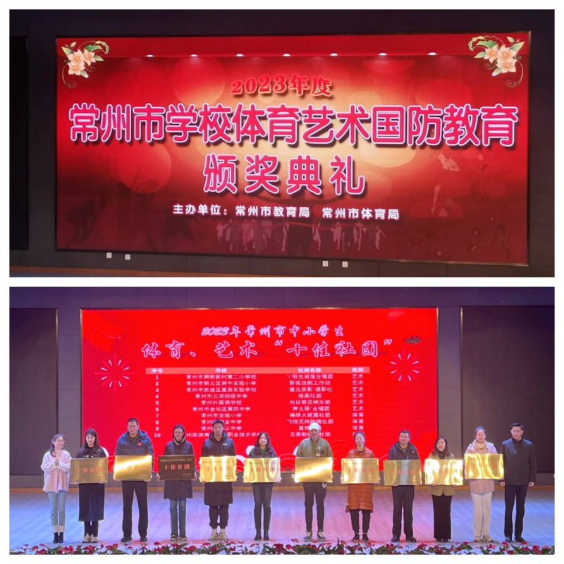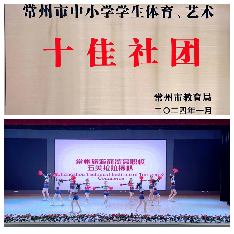 1月16日,2023年度常州市学校体育、艺术、国防教育颁奖典礼在常州田家炳高级中学隆重举行,我校“五美”啦啦操队被授予2023年常州市中小学生体育、艺术“十佳社团”荣誉称号,并作为受邀的两个社团之一在颁奖典礼上进行了现场的表演展示。此外,运动健康系赵丽丹老师获评2023年常州市中小学生体育、艺术社团“优秀辅导员”,12101班朱璐羽、吕欣楠两人获得2023年常州市中小学生体育、艺术社团“优秀学生”称号。
