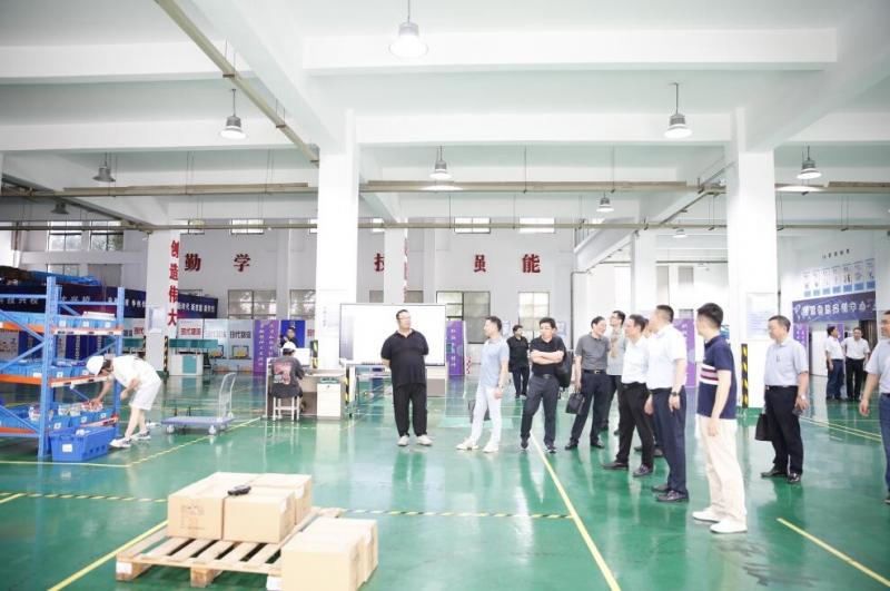 沈会长一行参观考察了学校季子楼、烹饪实训室、智慧物流实训室、工业产品设计实训室,与正在进行暑期集训的产品数字化设计与开发、智慧物流作业两支国赛队伍选手和指导老师亲切交流。