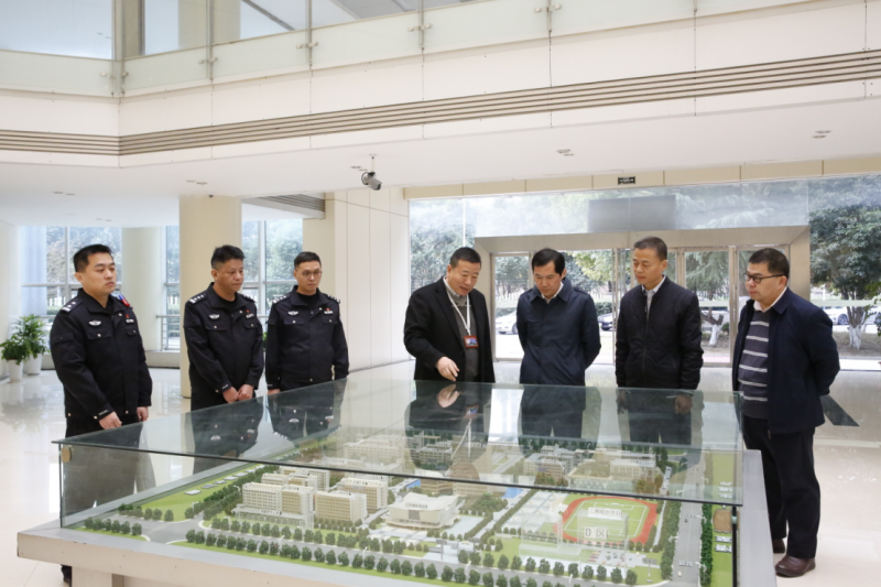 陈局长一行实地考察了学校南门保安室、监控室等学校安保重点岗位,对学校安保硬件配备、 人员保障、培训演练、制度规范等各方面情况进行了详细了解,并提出了优化建议。随后双方在季子楼310会议室进一步展开调研交流,王劲校长介绍了学校的基本情况和校园安全保障的有关举措。陈局长进一步强调了校园安全的重要性,并表示作为属地公安部门将进一步加强警校联动,全力保障校园安全,守护师生生命财产安全。