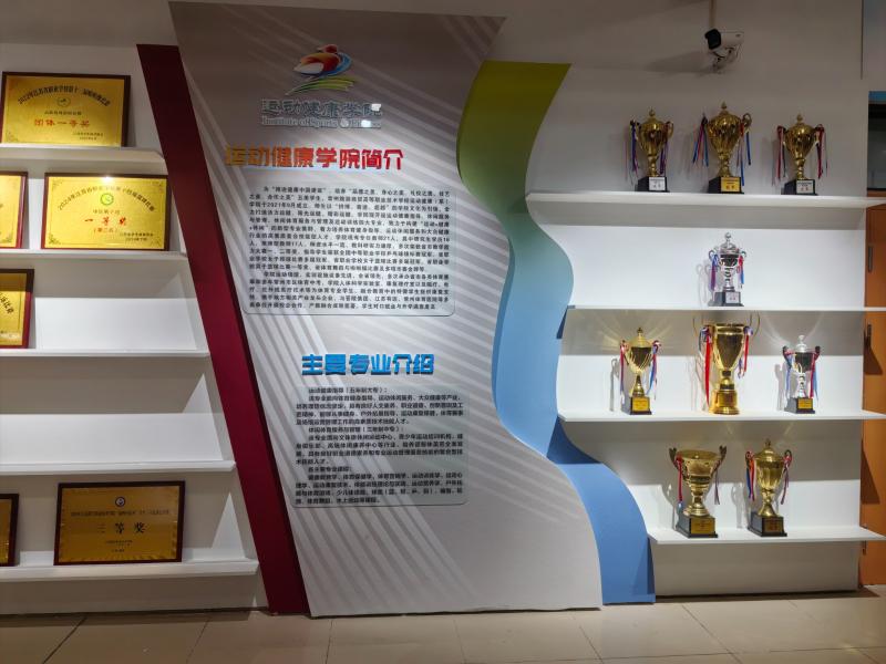 为了更好地记录并展示运动健康学院的专业发展尤其是近年来旅商高职校的体育成绩与荣誉,更有效地营造环境育人、文化育人的氛围,促进“体育+健康”观念深入人心,在校领导的关心下,运动健康学院行政团队因地制宜、大胆创新、删繁就简,从策划设计方案、撰写修改资料、施工完善、布置细节,历时2个月,终于完成该荣誉墙暨学院与专业介绍项目的更新。