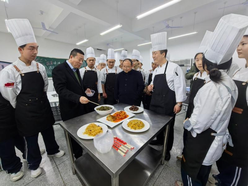 3月12日,在岚皋县职教中心,调研组参观了校园,并与岚皋职教中心开展教学交流展示活动。电商专业同课异构展示课中,岚皋职教中心安荣老师与我校电子商务专业朱绿尘老师带来了两节风格不同却同样精彩的专业课,正在该校开展帮扶工作的烹饪专业蒋楠老师带来的《岚皋味道遇见常州菜》展示课,引导烹饪专业学生将两地不同的风味进行创新融合。课后,双方进行了教研交流,并开展了组团帮扶工作座谈,常州菜研究院岚皋味道研究基地正式揭牌。