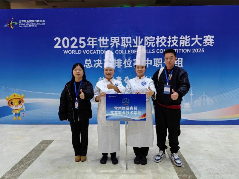 我校酒店烹饪学院学生李涵、季升涛、顾佳怡,自今年9月在2025年世界职业院校技能大赛“餐饮赛道”中职组比赛中凭借出色表现斩获金牌第一名并成功晋级天津排位赛后,在田君、张云等老师的悉心指导下,不断克服训练中的困难,于11月6日赴天津参赛。学校副校长彭利平、产学合作处处长白丽也亲临现场,慰问鼓励参赛师生。