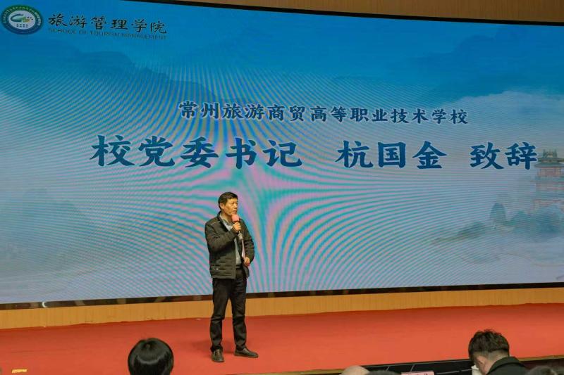 12月24日,常州旅游商贸高等职业技术学校旅游管理学院举办“诗行山河·文旅育人——东坡文化引领的文旅融合与协同育人实践活动”。学校党委书记杭国金、副校长戴卫银、江苏理工学院人文与旅游学院院长助理陈晓艳、文旅行业一线专家、学生家长代表等出席活动。活动围绕苏东坡文化主线,以诗词诵读、舞台展演、文旅实践导师聘任及协同行动发布等形式,系统推进文化传承、专业实践与协同育人的深度融合,进一步丰富学院文旅特色人才培养实践。