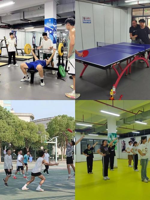 与此同时,当日其他老师的活动也开展地如火如荼。储群伟老师的排球活动现场充满一片欢声笑语;凌峰老师的乒乓球活动受众度高,学生参与广泛;器材健身项目由蒋聪科长负责,在过程中蒋科长全程亲自指导,把学生运动安全奉为第一要义;沈洪芳老师和赵丽丹老师负责的啦啦操项目洋溢着青春活力、激情四射的氛围;汪涛老师的体适能项目良好锻炼了学生身体素质;王诗雅老师的体态评估课程纠正了许多同学的不良身体姿态。