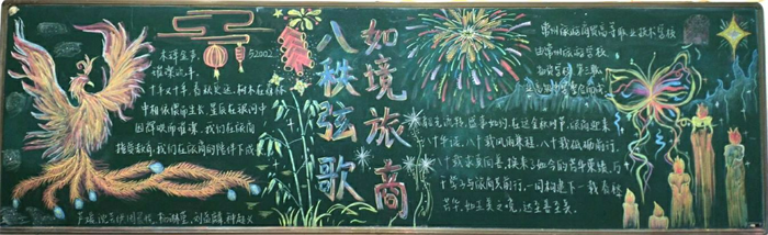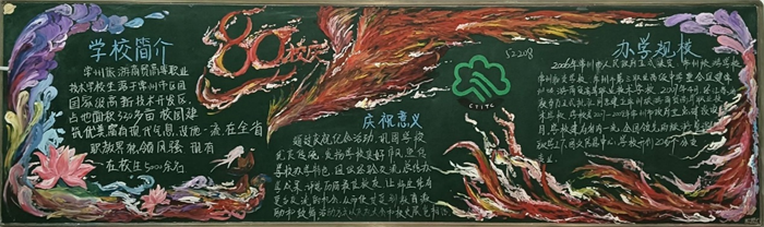 自活动开展以来,同学们发挥各自的才智,用画笔在黑板上描绘学校的美丽,抒发对学校的热爱之情。全体同学们积极参与,每个班级都创作出了独具特色的黑板报,字里行间表达了对学校的深重感情。