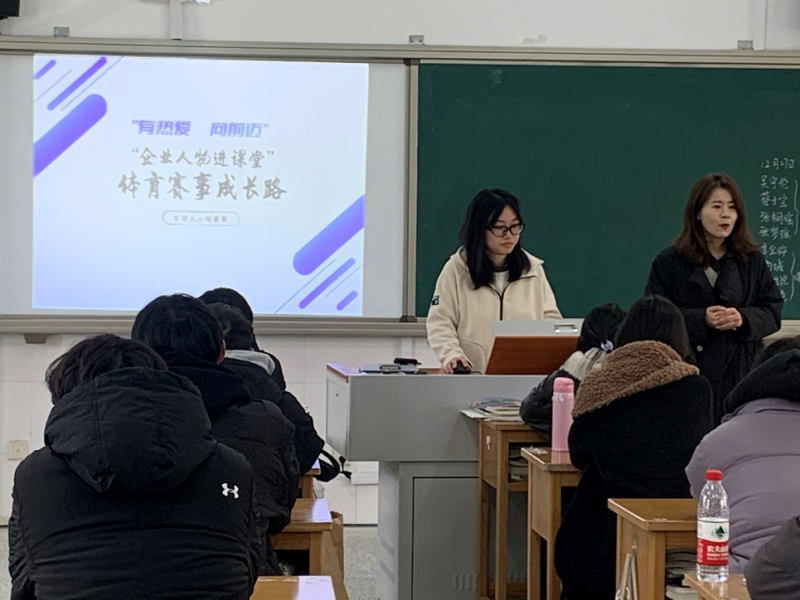 12月27日上午,运动健康系11901班的专业课堂迎来了一个特殊的讲师。她就是2023年庐山半程马拉松项目负责人,江苏有迈体育发展股份有限公司的杨嘉慧老师。
