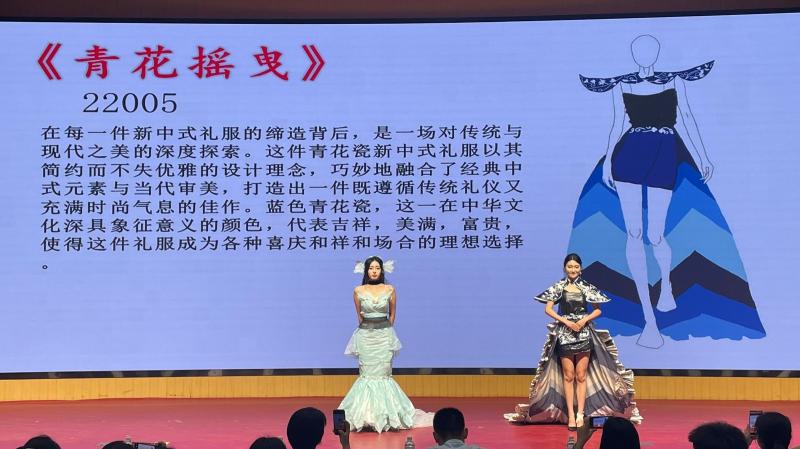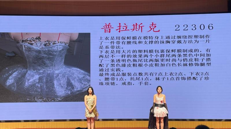 本次活动系部23个在校班级全部参加,22005班用蓝色垃圾袋带来殇海,呼吁大家保护海洋;22103班以外卖袋为主要材料,制作成精致的中山装,肩有龙形装饰,与常州“龙城”之称相呼应;22306班借鉴老式旗袍版式,用废旧布料做主体,碎花图案与常州青果巷的韵味相呼应。各班级充分发挥学生的主体性,积极参与,现场迎来了阵阵掌声。
