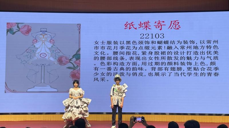 本次绿色时尚秀活动圆满落幕,在世界环保日来临之际,旅管系学生倡导环保理念,同时在设计中融入常州地方特色文化元素,传承常州文化,妙思有创意、巧手出心裁。