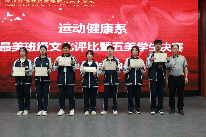 随后,运健系余旭东副主任宣读本次比赛的成绩。12001和12101荣获最美班级文化一等奖,12201、12202、12301和12203获得最美班级文化二等奖。五美学生方面,朱璐羽等5名同学获得一等奖,刘晨杰等6名同学获得二等奖、张如等7名同学获得三等奖。