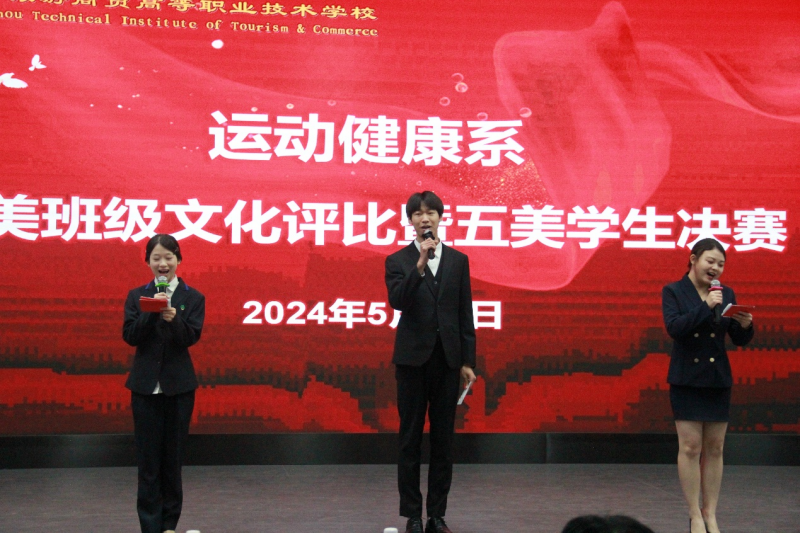 历经了近一个月的比赛选拔与培训,5月27日下午,运动健康系最美班级文化评比暨五美学生决赛于三杰厅正式举行。校党委陈晓霞副书记,校长助理、学生发展处励凌凌,教务处刘振华处长,运动健康系余旭东副主任,运动健康系刘建军书记,创意信息系胡晓蓓副书记,运动健康系蒋聪主任助理,旅游管理系团总支书记许明及部分初中校领导参与本次决赛。