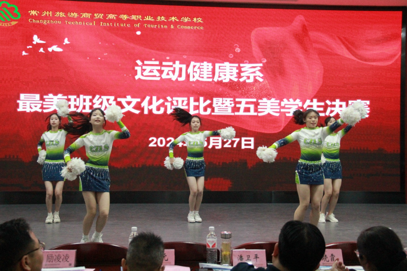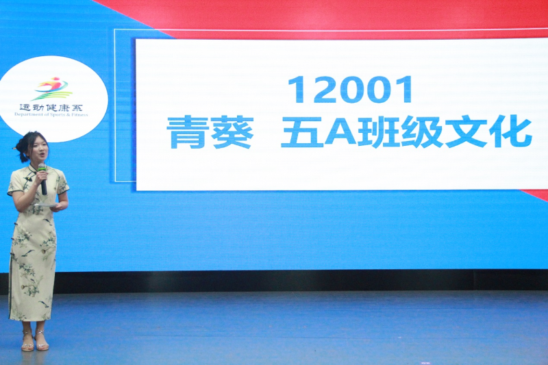 随着运健系啦啦操队活力四射的开场表演过后,决赛舞台正式拉开帷幕。本次共有3个班级和11名候选人参与决赛。参评最美班级文化的班级围绕班级情况、德育活动、产教融合、学生发展和团队展示等方面详细展现了班级特色与优势。12203以健身训练展示了“跃”文化,12101以踏板操展现动美活力,12001以中国古典文化呈现了青葵五A班级内涵。各班级以其独特魅力向广大师生呈现着运健系“拼搏、奋进、超越”的系部文化。