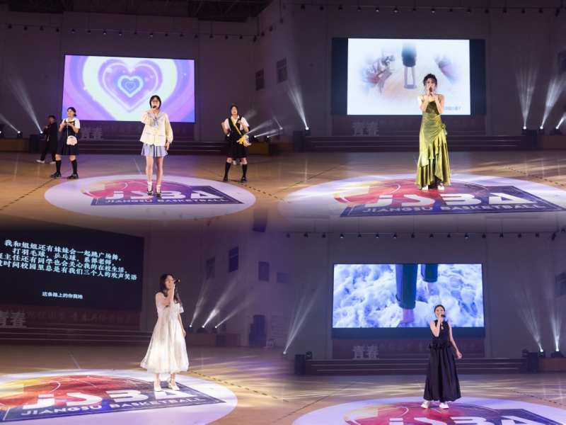 下午1点30分,比赛在体育馆拉开帷幕,学生会贴心地为观众准备了应援棒和拍拍手,各位选手的应援团也拉起了为选手加油的横幅,他们热情洋溢,让整个现场充满了热烈的氛围和青春的活力。首先是20强选手带来的活力四射的《青春不打烊》歌舞表演,瞬间点燃全场。接着10组选手依次登台献唱,1号李欣苒的《爱你》俏皮可爱;2号李静娴的《时间都去哪儿了》深情动人;3号陶嘉徐的《时间煮雨》婉转悠扬;4号朱梓欣的《不为谁而作的歌》震撼全场;5 号张羽以一曲《月光》宛如天籁之音,空灵澄澈至极,仿佛让听众置身于梦幻的月光世界之中,令人深深沉醉。而就在这一系列精彩演唱之后,中场节目惊喜呈现,这是由经贸系行政团队和学生携手带来的《诗画中国》歌舞表演,左文宏书记的书法展示更是引来了全场阵阵热烈的欢呼声。