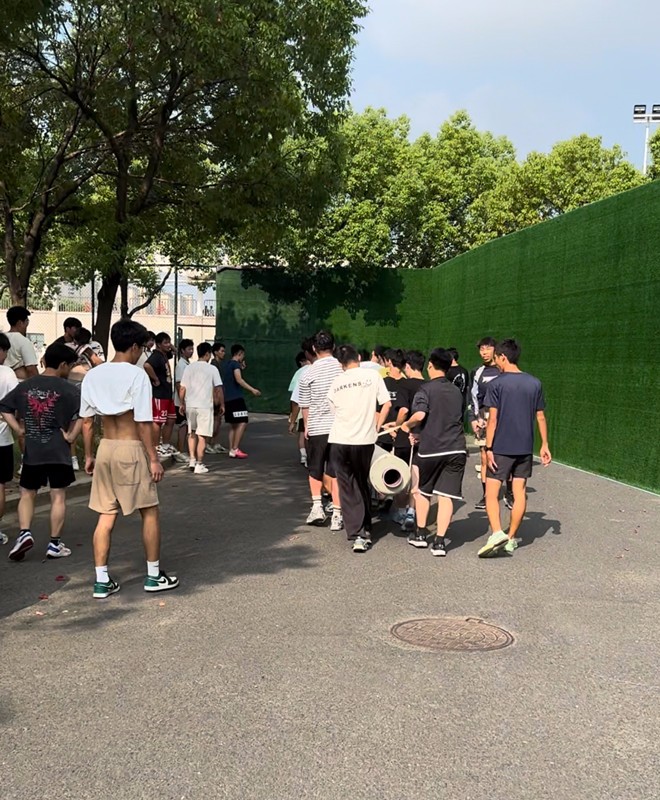 “千人同心,则得千人之力;万人异心,则无一人之用。”一个像往常一样平凡的上午,学校不再像以前上课时那般宁静,校园操场上传来了阵阵声嘶力竭的呐喊声:“使劲儿!使劲儿!”老师和学生们一起双手紧握系在羽毛球垫的绳子,由于垫子非常重,他们肌肉紧绷,汗水从额头滑落,分外闪耀,砸在地面上,激起一股热浪。短暂休息间,他们看向自己因用力过度而泛红的双手。虽然汗水浸透衣衫,手臂肌肉传来阵阵酸楚,每一次微弱的颤抖、每一次试图发力的瞬间,都会引发一阵阵尖锐的疼痛,但他们坚毅顽强,能够团结一致,发挥出巨大的潜能,克服了巨大的障碍,师生同心努力坚持到搬运结束。