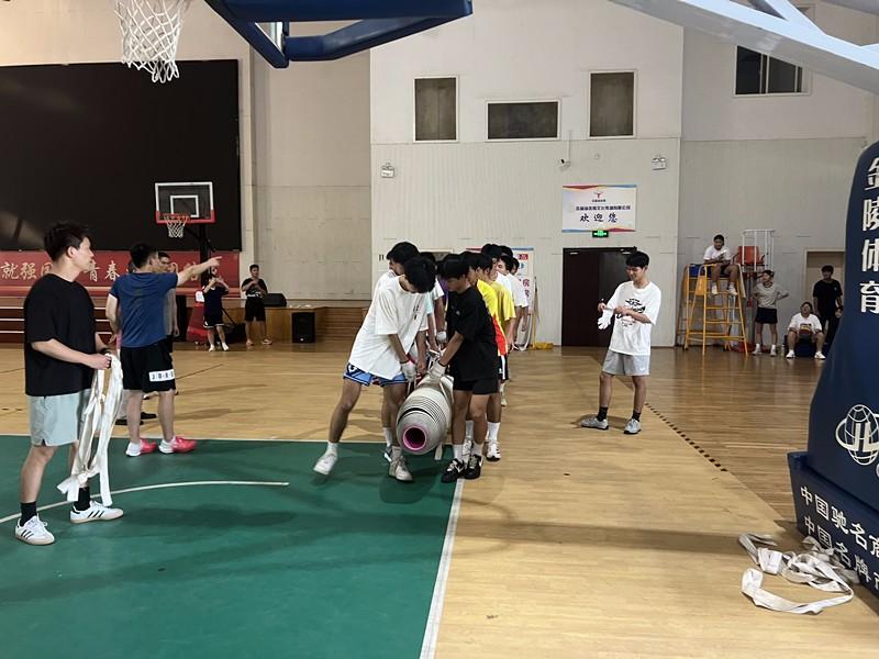 9月10号上午,运动健康学院50余名同学,在蒋聪副院长及多位学院老师的带领下,将两片羽毛球球场地垫从体育馆二楼搬迁至叉车实训大棚,完成校队训练基地的重建。