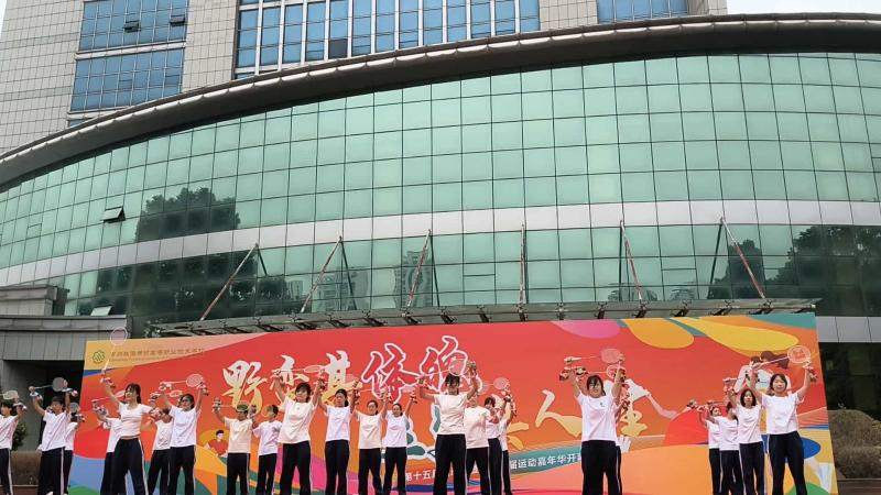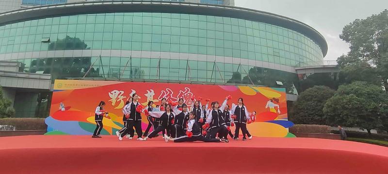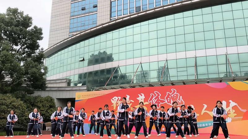 舞龙表演拉开序幕,学院行政团队带着乒乓球、羽毛球等道具上台,脸上笑容洋溢,为舞台增添第一笔青春色彩。班级62301方队迈着坚定的步伐入场,用铿锵有力的奥运跆拳道弘扬体育精神,展现了朝气蓬勃的青春活力。62302班方队手持羽毛球拍演绎着奥运健儿们的奋斗姿态,诠释了羽毛球的激情之美。62303班方队紧握球拍,正手、反手,抽拉提削,仿佛一个个奥运乒乓运动员。明快的节奏、婀娜的舞姿、动人的旋律,62304班舞动起青春的花球,绽放着激扬的活力与自信。台上青春迸发,台下掌声不断。
