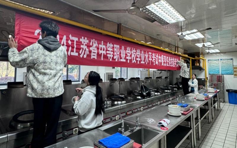 2024年11月12-13日, 2024年江苏省中等职业学校学业水平技能考试在我校举行。酒店烹饪学院承担酒店、烹饪两个项目的技能学业水平测试考点工作。其中,酒店服务类测试有中餐摆台与中式铺床两项技能考试,各分为四场,中餐摆台每批30分钟,中式铺床每批15分钟,共承担215人次考试。中餐烹饪类分为八批,每批60分钟,共承担183人次考试。