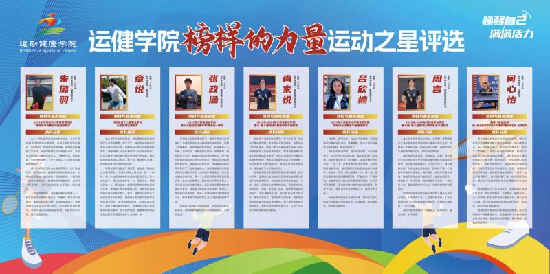 为充分发挥文化育人、环境育人和榜样引领的作用,运动建康学院自2024年金秋成立以来,学院行政团队精心设计,在教学区荆川楼(A2)与国钧楼(A3)连廊进行了文化墙的更新布置。