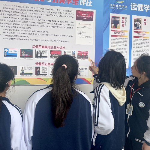 五美学生板块则展示了为期一个月的评选活动及最终获奖选手吕欣楠、朱璐羽、屠欣悦、周言、陈舒婉、尚家悦、刘晨杰、何心怡、姚钰柠、张如等同学的风采。充分体现出运健学院高标准培养“五美”学生品德美、身心美、礼仪美、技艺美、合作美的显著成果。