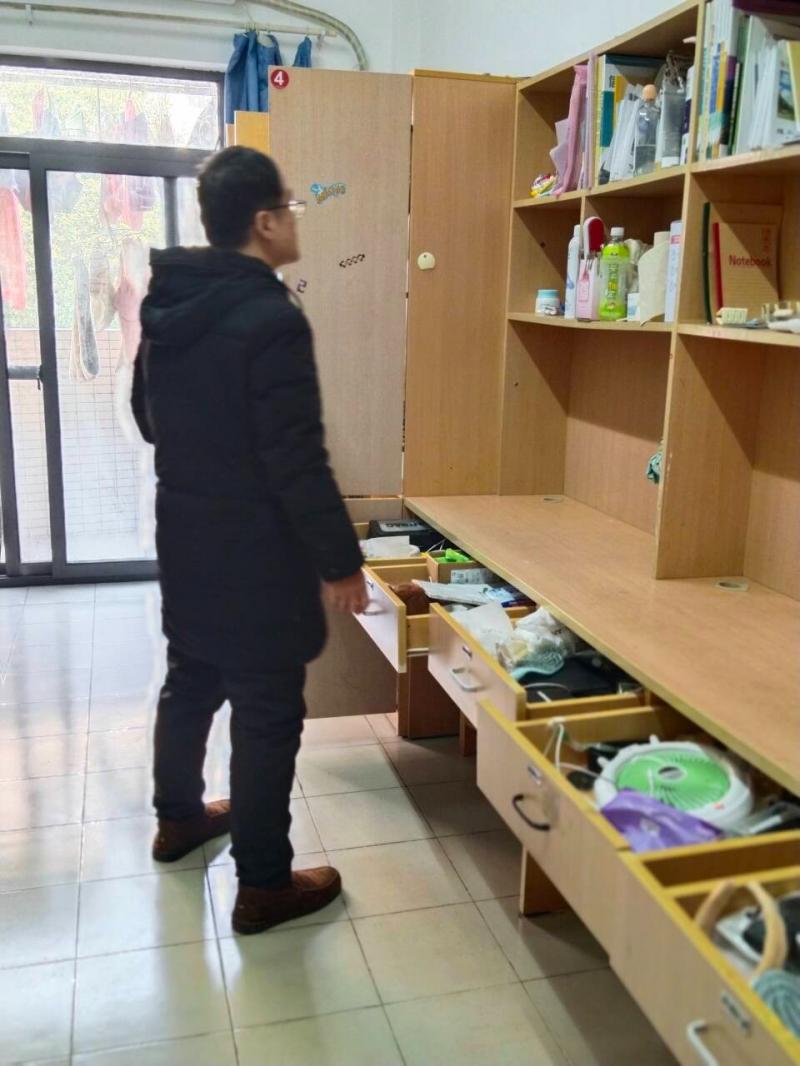 检查过程中,班主任们重点聚焦于大功率电器等违章电器的使用情况。随着冬季气温降低,部分同学可能为图一时之便,违规使用电暖器、电炉等大功率电器,这些电器极易引发电路故障,进而造成火灾等严重安全事故。班主任们一边仔细查看每一个角落,一边向舍长们耐心讲解违规电器的危害,强调宿舍安全关乎每一个人的生命与财产,不容丝毫懈怠。舍长们也积极协助,认真记录检查情况,对于发现的问题及时上报。除大功率电器外,检查小组还对宿舍的卫生状况、物品摆放、门窗锁闭等方面进行了检查。大部分宿舍能够保持良好的卫生习惯,物品摆放整齐有序,但仍有个别宿舍存在垃圾未及时清理、物品杂乱堆积等问题,班主任当场督促同学们进行整改,引导大家树立良好的生活习惯。