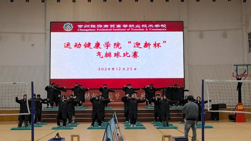 为迎接新年与新生的到来,丰富学生文体活动,12月25日下午,运动健康学院于体育馆二楼举行“迎新杯”气排球决赛暨冬季联赛颁奖典礼。校长助理、招生就业处处长励凌凌、教师发展处处长史金虎、运健学院副院长蒋聪、运健学院书记刘建军及学院全体同学参与本次盛会。比赛在活力四射的踏板操开场表演中拉开帷幕。