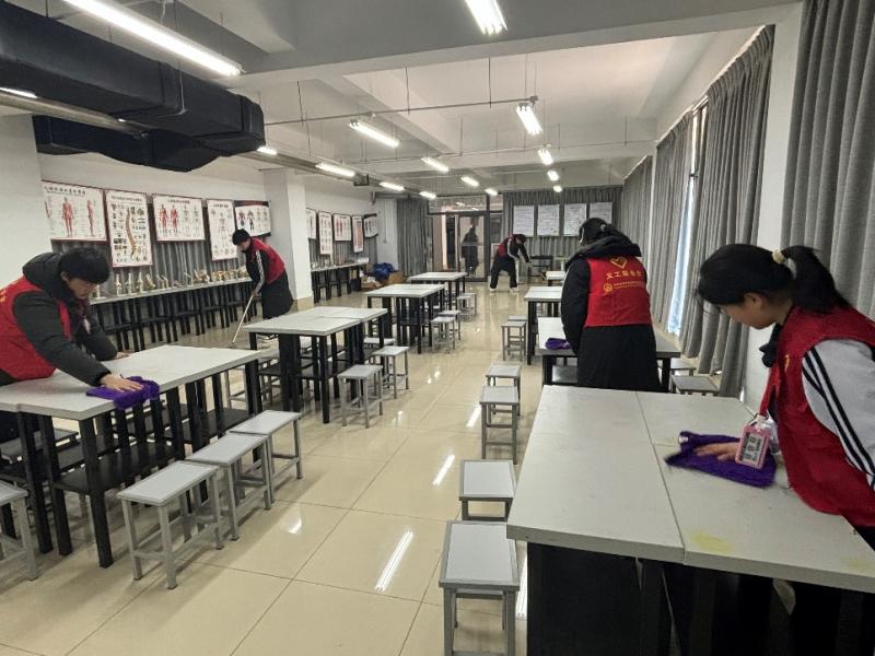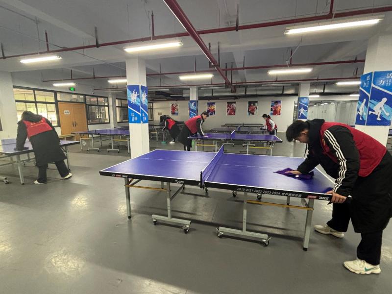 全院学生积极响应本次活动。场馆内,无论是乒乓球房、健身房、实训室还是各个角落,都留下了志愿者们辛勤劳动的身影。在活动中,有的同学对学院所获荣誉进行了精心呵护,确保一尘不染。有的同学对日常健身区域细致打扫,清理每一处细节。还有的同学擦拭了实训室,保证实训课堂的干净整洁。志愿者们发扬不怕脏、不怕累的精神,认真清扫每一个角落,用实际行动维护了体育场馆设施。