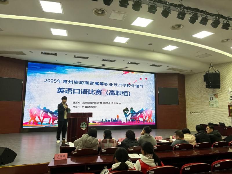 2月19日下午,外国语学院在云崧楼三杰厅成功举办了校外语节英语口语(高职组)比赛。本次比赛作为2025年学校外语节系列活动的重要组成部分,旨在为学生提供一个展示英语口语水平的平台,培养学生的自信心和表现力,同时通过讲述中国故事,传承中华优秀传统文化,弘扬社会主义核心价值观,增强文化自信。本次比赛邀请到了江苏理工学院外国语学院商务英语系主任郭芮、学校旅游英语教研室主任邬锦蕾、商务英语教研室主任林犇、旅游英语专业教师许雯绯、商务英语专业教师沈佶、英语口语集训队教练黄榴红担任评委。外国语学院院长薛骁、副院长周杨、教务科长卢琳琳参与活动。