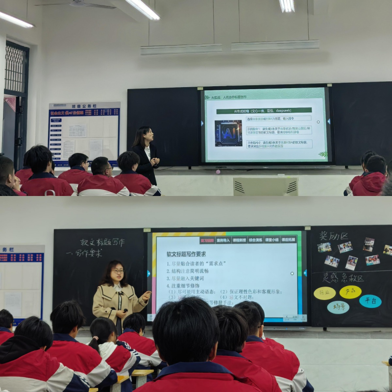 在岚皋县职教中心,来自岚皋职教中心的安荣老师和团队成员朱绿尘老师围绕“软文标题写作”主题,精心设计了两节风格不同的同题异构公开课。通过任务驱动、互动探究等教学模式,引导学生掌握标题创作技巧。课堂上,学生们积极参与讨论,在实践中体会到“好标题”对信息传播的重要性。课后,江苏教学创新团队的教师与岚皋职教中心的教师开展了评课活动,双方就教学目标设定、课堂互动设计、课程思政融入等问题进行深入交流,现场碰撞出思想火花。