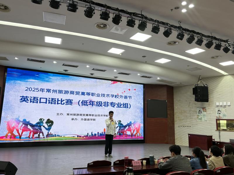 为持续深化外语学习氛围,助力学生用外语讲好中国故事,2025年4月16日下午,外国语学院在E1云崧楼三杰厅成功举办英语口语大赛低年级非专业组比赛。外国语学院教务科长卢琳琳、旅游英语教研室主任邬锦蕾、商务英语专业教师徐佳、旅游英语专业教师蔡浩镭,以及校英语口语集训队教练黄榴红等嘉宾和评委出席了比赛。