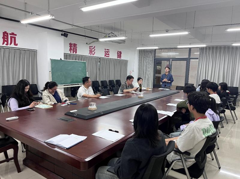2025 年 4 月 22 日,运动健康学院在体育馆会议室召开信息员座谈会,校长助理励凌凌,督导评估处处长助理施燕丹,后勤处处长助理蒋骏,运动健康学院刘文文老师、各班信息员参加本次座谈会。