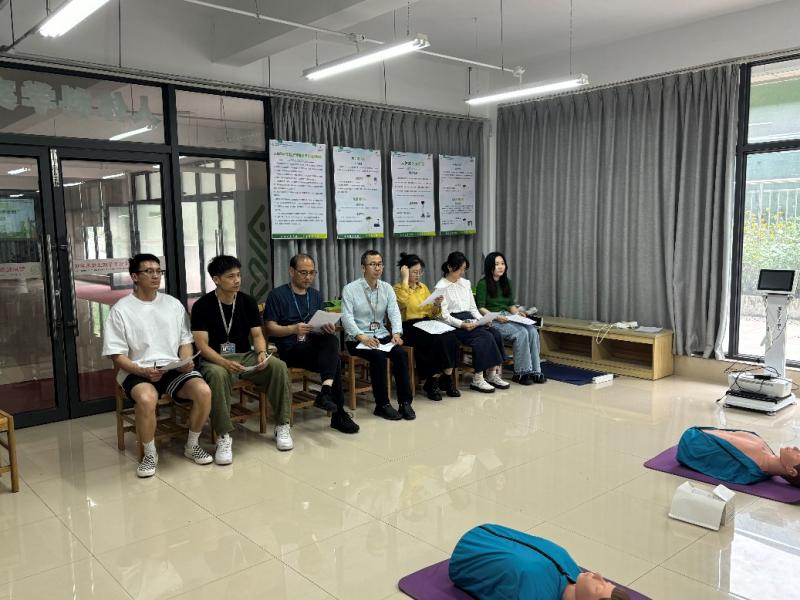 第二阶段是技能实操,5月16日,产学合作处处长高勇忠、运健学院副院长蒋聪、运健学院书记刘建军、运健学院科长施朝、数字创意学院团总支书记潘菡舟、经济贸易学院团总支书记张蕴仪和王诗雅老师出席本次活动。14名选手按照抽签顺序分成7组,围绕心肺复苏、创伤救护的技术实操、场景演练三个环节进行了CPR+AED的技能实操,并由现场的评委老师打分。比赛中,选手们面对模拟突发心脏骤停场景,迅速判断、准确定位,以标准化的按压频率和深度展现肌肉记忆般的熟练度。每一个动作都精准到位,每一次操作都争分夺秒。他们全神贯注的模样,仿佛此刻面对的就是真正需要救助的生命。最终,经过裁判长王诗雅的细致总结后,本次活动圆满结束。