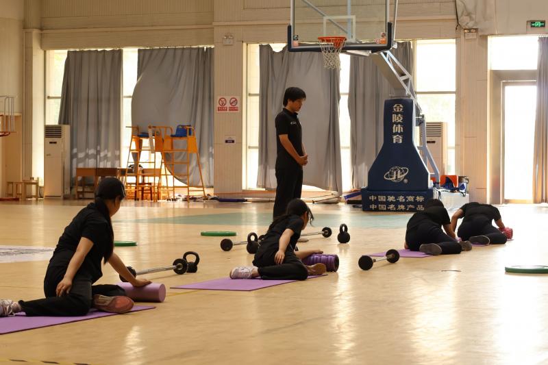 在皮划艇视频展示环节,学生们身着专业装备,在水域中流畅演示划桨技巧,展现了平衡力与团队协作能力;华尔兹与啦啦操课程的学生们则以优雅的舞步、默契的配合,赢得现场阵阵掌声;篮球、田径与搏击项目通过基本功展示,凸显了学生的速度与爆发力,通过示范讲解,展示了学生们作为教练员扎实的理论知识与良好的语言表达能力;健身与瑜伽课程的学生则现场指导队员进行器械训练与瑜伽训练,传递科学健身理念。