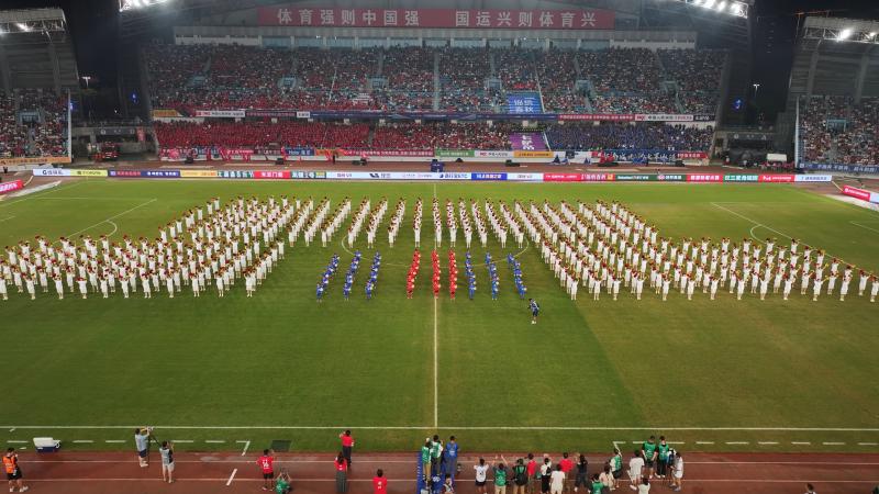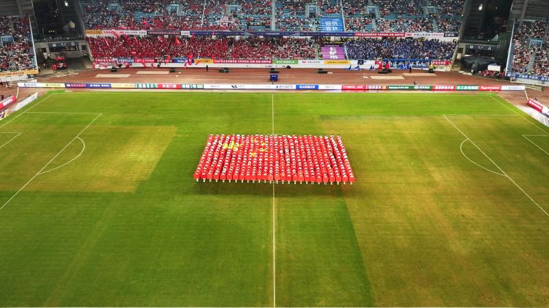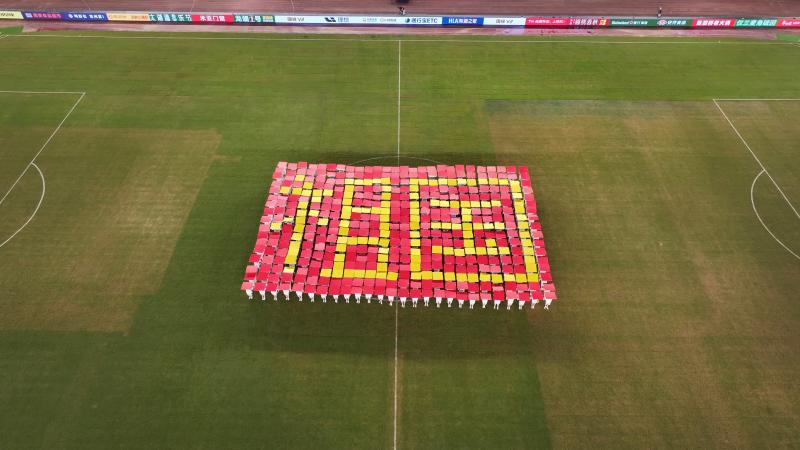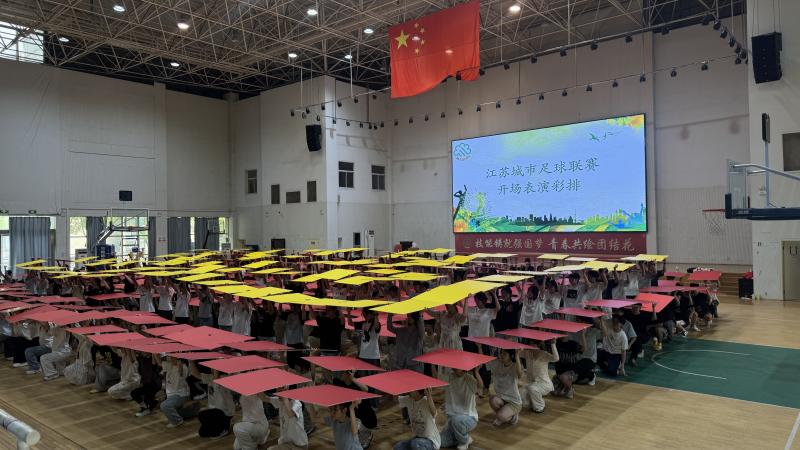 9月13日晚,苏超“常州VS宿迁”在常州奥体中心盛大举行。运动健康学院的同学们身着统一服装,以饱满的精神状态亮相舞台。在《我和我的祖国》音乐背景下,同学们动作铿锵、队形变幻,第一部分的翻板表演先后呈现出“国旗”、“祖国”、“万岁”、“苏超”、“加油”、“常州”、“GOAL”等字样图案,第二部分则以活力四射的《向前冲》啦啦操将气氛推向高潮。他们与外国语学院学生、足球小将们默契配合,共同奉献了一场力与美交织的视觉盛宴。看台上掌声雷动,现场观众纷纷举起手机记录这精彩时刻。完主席也高度称赞“孩子们表现非常棒!”。他们不仅是表演者,更是运动精神的传递者,他们用身体语言,完美演绎了力与美的结合,为苏超联赛注入了青春的激情。