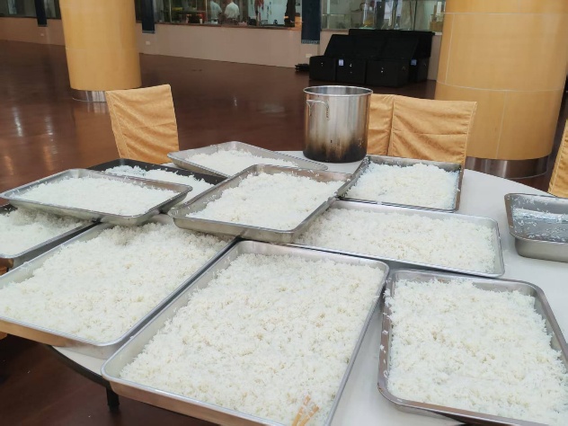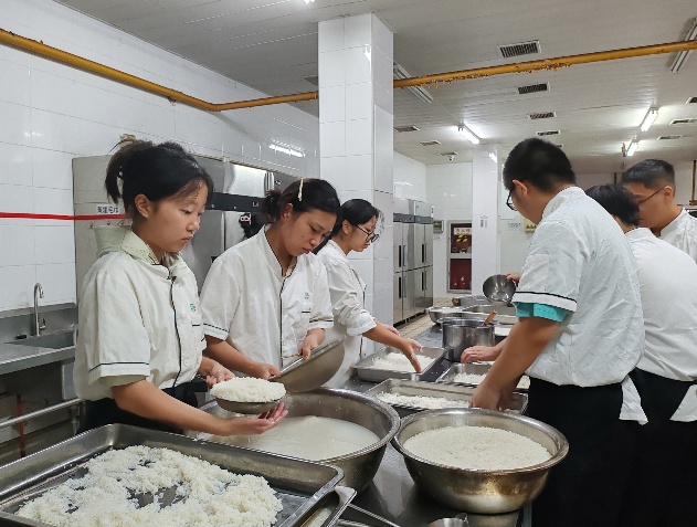 为保障美食展示(萝卜干炒饭)志愿服务工作高质量推进,学院提前开展针对性筹备。9月26日下午,学院志愿者进入食材准备环节,有条不紊地按照标准流程蒸制米饭、清洗荠菜、切配葱花、制备鸡蛋液等原辅料,确保食材新鲜卫生。