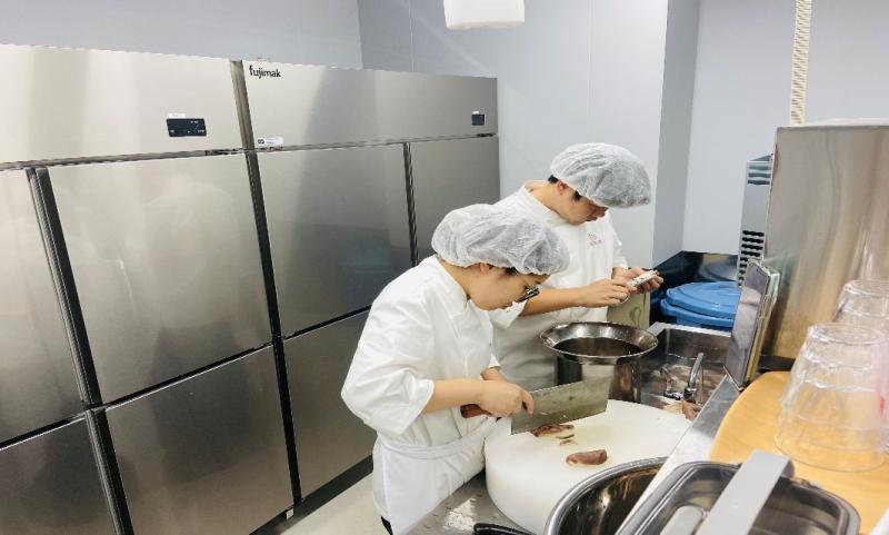 在过去的一个月里,面对全新的环境和不同的饮食习惯,师生团队展现了出色的适应能力和专业素养。他们密切观察师生反馈,不断尝试与调整菜单,精心打磨每一道菜品的口味,力求在保持传统风味的同时,兼顾当地食客的偏好。从火候的掌控到调味料的配比,从食材的甄选到出品的呈现,每一个细节都凝聚着团队的心血。功夫不负有心人,食堂的菜品质量稳步提升,口味逐渐稳定,获得了山梨学院大学及中方交流师生的一致好评,为“尝味坊”赢得了良好的口碑。
