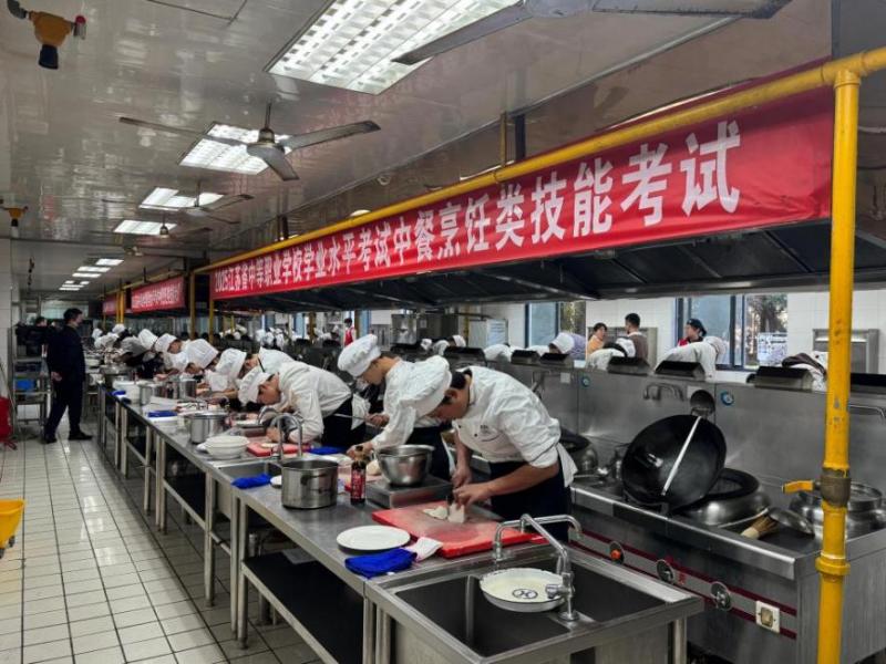 2025年江苏省中等职业学校学业水平考试烹饪类技能考试在我校考点顺利落幕。本次考试共有153名考生参加,为保障考试流程的顺畅与评判的精准,采用分批次考核模式,将考生分为五个批次依次进行,确保了整个考试工作的高效与有序。