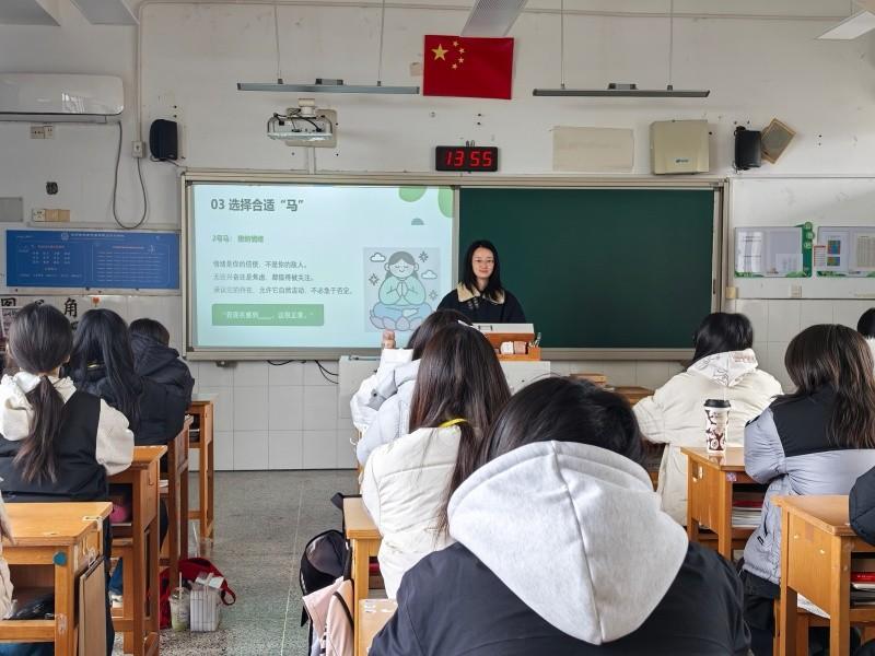 班会还特别传递了“骑错了可以换一匹马”的灵活心态,鼓励学生在尝试中调整、在调整中成长,不必因一时的不适应或方法不当而否定自己。班会最后以“哪怕生活给我一匹烈马,我也有把它骑成快乐的模样”收尾,让学生在轻松氛围中收获心理韧性与成长力量。