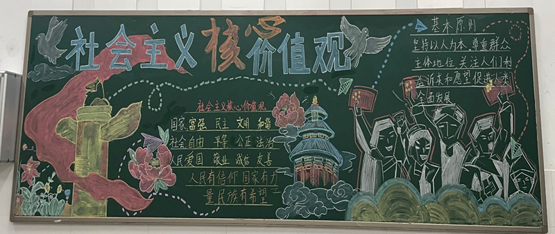 本次黑板报活动,有助于学生认同和践行社会主义核心价值观,对促进广大学生全面发展,坚定理想信念起着至关重要的作用。