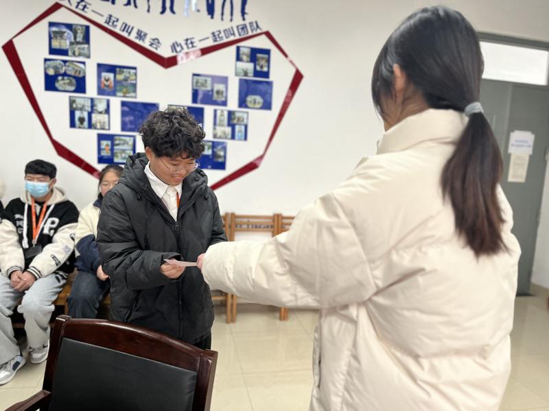 随后,由主席团为在实习期表现良好的成员颁发聘书及在模拟查分中表现优异的成员颁发奖状。尤其表扬23级杨雨杰同学在模拟查分中表现优异,是新生学习的好榜样。