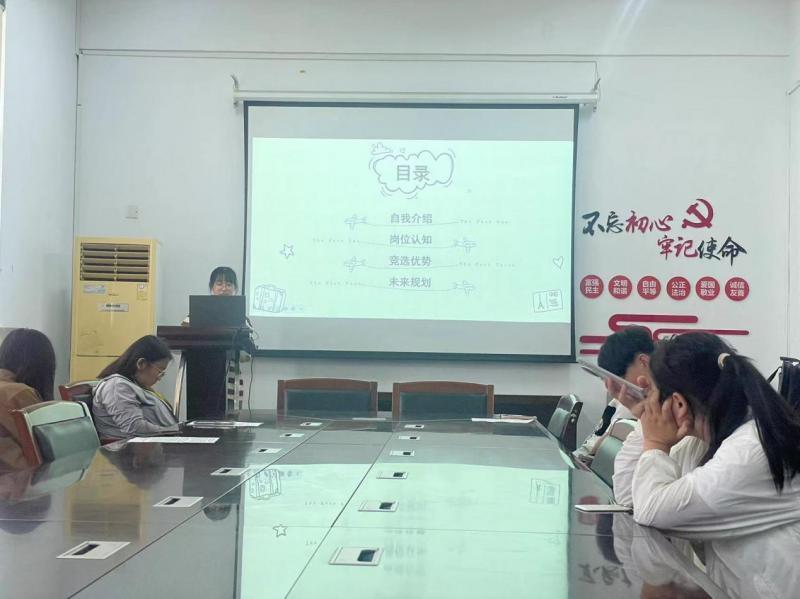 6月5日下午自习节课,创意信息系记者团在有光楼404进行了换届选举的彩排,指导老师吴姝妍以及记者团负责人陆钰晴、冯萧来到了现场观摩,并为候选人提出改进建议。