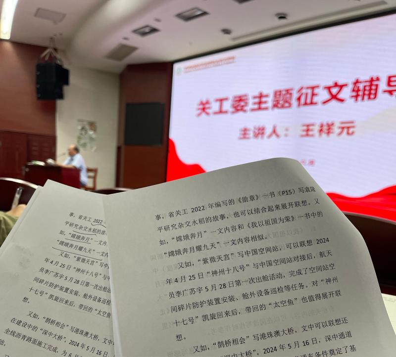 2024年6月6日下午15:15分,由学校关工委组织的主题征文辅导讲座在云崧楼三楼三杰厅举行,校关工委王祥元老师担任主讲,信息系记者团十位同学参加了此次会议。