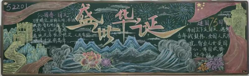在那色彩斑斓、内容丰富的黑板报上,鲜艳的五星红旗迎风飘扬,象征着国家的繁荣昌盛;身姿矫健的龙,盘旋在祖国的壮丽山河之上;历史的画卷徐徐展开,回顾了过去的辉煌岁月和艰难历程。