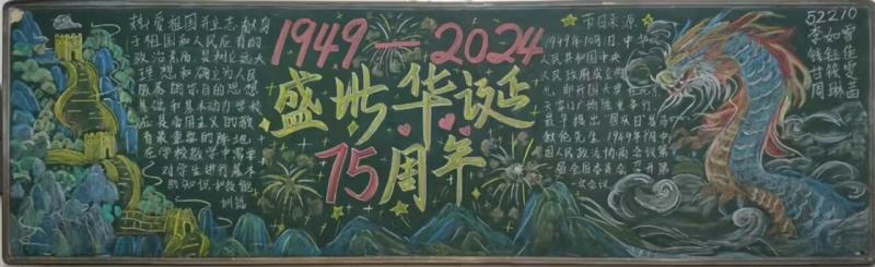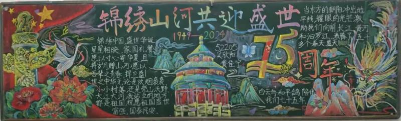 各个班的宣传委员们分工合作,光是选择素材就花了不少的时间。他们精心设计版面,认真书写文字,仔细绘制图案,一遍遍地修改。他们用手中的粉笔,勾勒出了对祖国的深深热爱。每一笔每一划,都凝聚着他们的心血和智慧;每一个色彩,都代表着他们的骄傲与自豪。