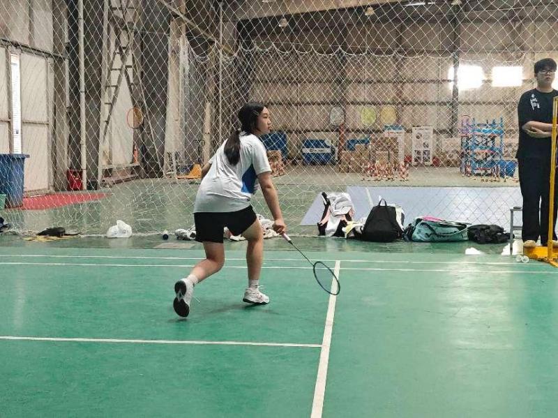 男单比赛中,经济贸易学院52107班的邵冠杰展现出了非凡的实力。面对运动健康学院和酒店烹饪学院强劲的对手,邵冠杰凭借精准的控球、迅猛的扣杀以及出色的防守反击,最终邵冠杰赢得了男单的胜利,提高了本队士气,也让观众见识到了他扎实的羽毛球功底和冷静的比赛心态。
