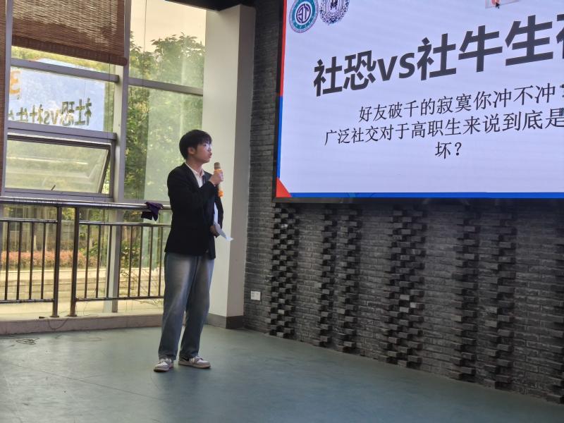 本次辩论赛初赛以个人脱口秀形式,选手们围绕“兼职狂人VS学业铁人:搞钱搞分谁更香”“佛系青年生存指南:躺平是智慧养生还是摆烂艺术”“社恐vs社牛生存战:广泛社交对于高职生来说到底是好还是坏”三个极具话题性的辩题展开激烈讨论。