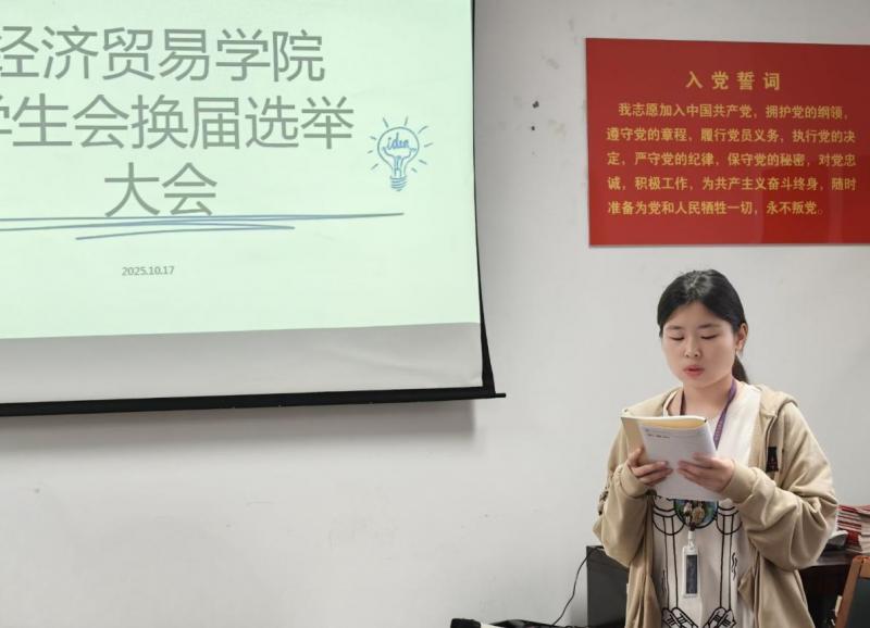 最后,学生会主席周鑫肯定了上届团队的付出与成绩,鼓励新一届成员珍惜机会、勇于担当,在服务师生的过程中锤炼能力、增长才干,让学生会成为连接学院老师与学生的坚实桥梁。相信在新一届团队的带领下,经贸学院学生会将持续发挥作用,为校园建设贡献更多青春力量。
